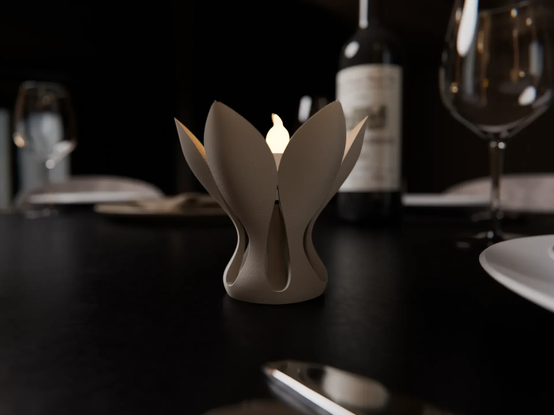 3D lotus kaarsenhouder, decoratieve kaarsenhouder, kaarsenhouder voor LED-theelichtjes, moderne woondecoratie, 3D-geprinte kaarsenhouder, elegante tafeldecoratie, handmatig afgewerkte kaarsenhouder, unieke interieuraccessoires.